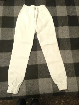 Pantalón de chándal de color blanco. Cómodo y versátil. - Cintura elástica. - Puños ajustados.