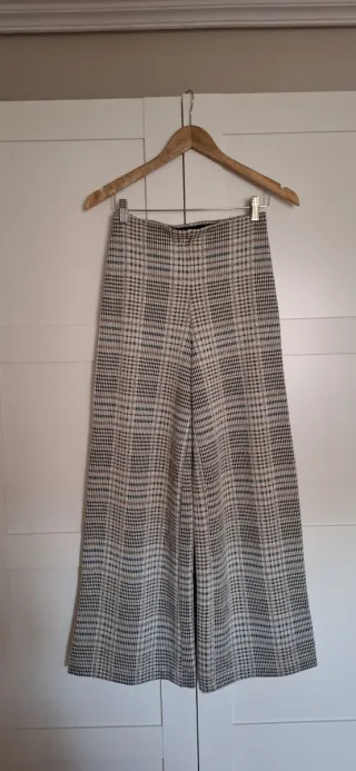 Pantalones palazzo con un bonito estampado de cuadros. Nuevos sin estrenar. Con goma en la cintura y abrigaditos - Diseño de cuadros en tonos marrón y azul. - Corte palazzo ancho.