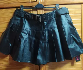 NUEVA sin estrenar Falda corta plisada de piel sintética con cinturón de hebilla Estilo gothic/ punk Lleva debajo pantalón (foto 4) Plus Size: 3XL de tallas grandes (equivalente a una 52) Medidas en la última foto