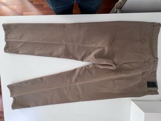 Pantalón tipo chino para hombre. - Corte recto. - Cierre de cremallera y botón. - Bolsillos laterales. - Bolsillos traseros. - Tejido 100% algodón. - Está en muy buen estado, pero tiene los bajos traseros desgastados (ver fotos). Si se mete un poco de largo queda perfecto. - Ver medidas en las fotos porque talla grande.