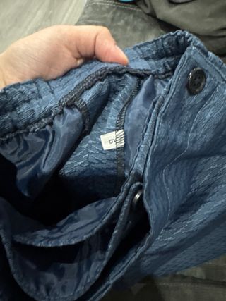 Pantalones deportivos color azul con detalles en otros tonos azules, rayas decorativas en los laterales, bolsillos y cordón de ajuste, cómo nuevos ya que me están grandes y no me los pongo.