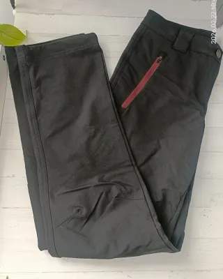 - Pantalón multiusos, con detalles de confección: ajuste elástico en cintura, bolsillo grande en el muslo derecho, interior térmico. -Talla 34 (en realidad puede ser una 40). - Material de algodón gris y nylon.