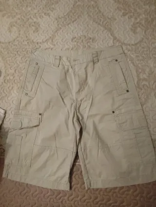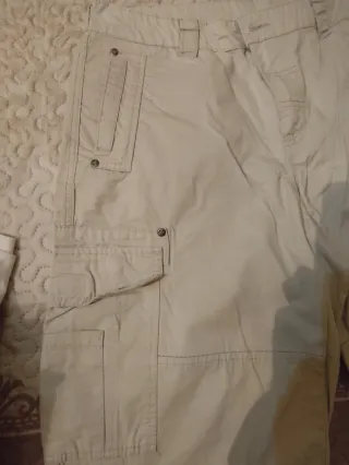 Pantalón corto de trekking en color beige. Diseñado para actividades al aire libre, talla 48 equivalente a una 42 (L), las fotografías son parte de la descripción y estado del artículo. Visita mi armario. - Tejido resistente. - Múltiples bolsillos. - Cierre de botón y cremallera.