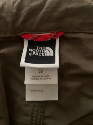 Vendo pantalón corto de trekking de mujer de la marca North Face. Color beige y con un coqueto cinturón a modo de lazda. 2 bolsillos externos laterales y 2 traseros. Tejido técnico transpirable. Perfecto estado. Talla 8 US (aproximadamente 42 española). Ancho cintura medido en plano unos 42cm. Tiro aproximadamente 35cm. Largo desde la cintura 47cm. Entregables en Sanchinarro, Bernabéu o Avda América.