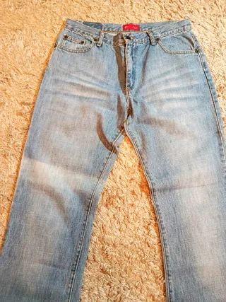 Pantalón vaquero de la marca Levi's. - Corte bootcut, algo más ancho abajo. - Lavado desgastado. Muy cómodos al ser elásticos , lástima que me quedaron pequeños porque son muy cómodos y sientan genial. Medidas: Cintura : 40 cm Largo : 100 En mi perfil tengo otros Levis de hombre