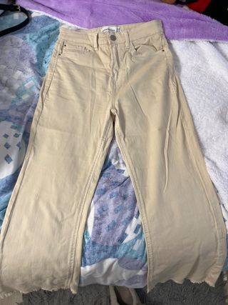 Pantalones campana de Stradivarius, sin estrenar. Conservan la etiqueta. Talla 32, pero es parecida a una 34. El precio de compra original fueron 25,99€.