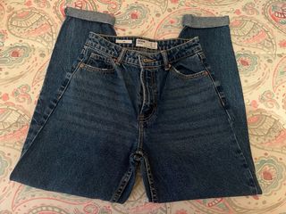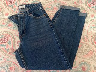 Pantalón vaquero de Zara con corte slim y detalle de abertura en el bajo. - Diseño de tiro alto. - Bolsillos delanteros y traseros. - Cierre de cremallera y botón.