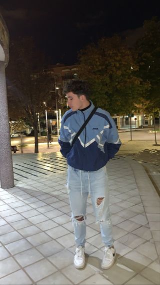 Vaqueros estilo jogger de Bershka en color azul. Tienen un corte moderno y cómodo. - Diseño con rotos. - Cintura con cordón ajustable.