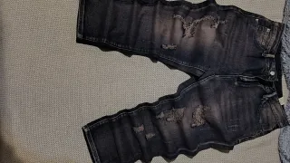 Conjunto de cuatro pantalones vaqueros para chico. - Pantalón vaquero oscuro. - Pantalón vaquero gris. - Pantalón vaquero claro desgastado. - Pantalón vaquero azul claro con detalles. - Los 4 pantalones, 20 eur. Todos. También se venden sueltos. Corte moderno, nuevos a estrenar pero sin etiqueta. Talla 32 de cintura y largo 30.