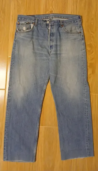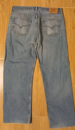 Clásicos jeans Levi's 501 en tono azul. Un básico atemporal para cualquier guardarropa. - Cierre de botones. - Diseño de cinco bolsillos. Pantalones Levi's. Tienen un corte recto y un acabado desgastado en los bajos. Levi's 501 W36/L36 Está cogido el bajo para persona de 1,75 de estatura mas o menos. - Bolsillos delanteros y traseros. - Costuras reforzadas.