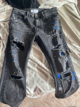 Pantalón vaquero de la marca PULL&BEAR. - Diseño desgastado y con bolsillos laterales.