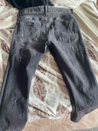 Pantalón vaquero hombre talla 40, tiene una pequeña mancha por detrás,la que aparece en la última foto que no se quita, de ahí su precio.
