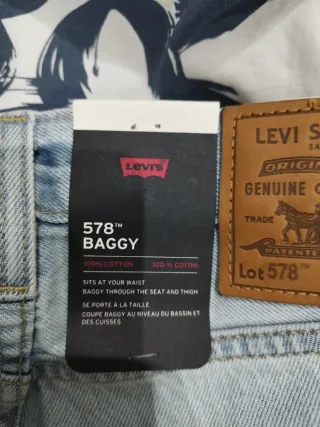 Pantalón vaquero de Levi's en tono azul claro. Talla 28X32 - Corte ancho. - Cintura alta. - Cierre de cremallera y botón.