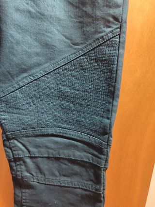 Pantalón vaquero usado para moto en color azul con protectores incluidos. - Diseñado para ofrecer protección y comodidad. - Incluye protecciones para rodillas y caderas desmontables. - Diseño tipo cargo con múltiples bolsillos. - Talla 42-44 - Elastico