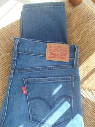 Pantalones vaqueros de la marca Levi's en color azul. - Etiqueta de cuero con el logo de la marca. - Bolsillo trasero con el icónico diseño de costura. - Pequeña etiqueta roja con el logo en el bolsillo trasero.