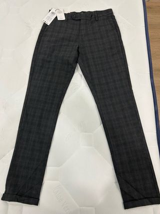 Pantalón de corte slim fit con un diseño a cuadros. - Cintura con trabillas. - Cierre de botón y cremallera. - Bolsillos delanteros y traseros. 40 cm de ancho de cintura