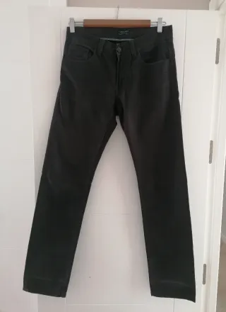 Conjunto de tres pantalones para hombre en tonos beige y negro,talla 40/42,marca d Cortefiel y zara,muy buen estado,dos modelos chino y un vaquero d 4 bolsillos - Tres pantalones incluidos en el lote. - Variedad de colores para combinar,beige marino y tostado