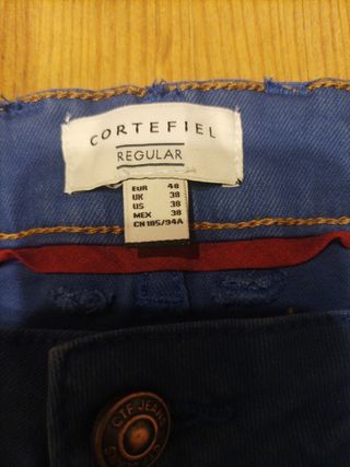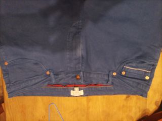 Uno azul marino de trabajo, otro vaquero azul y vaquero azul marino, miden de cintura 100 y 105 de largo, los tres pares por 20€. Y uno por 9€. Están nuevos.