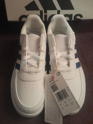 Zapatillas adidas breaknet 2.0, talla 38, 2/3 nuevas con etiqueta. Adidas originales, que se envían con la caja original. Modelo Breaknet. Confort y estilo deportivo Esta zapatilla adidas se inspira en las siluetas clásicas de tenis, pero está pensada para centrar todas las miradas en las calles de la ciudad. Su diseño minimalista con toques de color te permite combinarla con un pantalón corto, un pantalón chino, un vaquero o lo que se te ocurra. La parte superior contiene al menos un 50% de materiales reciclados. - Modelo Breaknet 2.0 K de Adidas. - Color blanco y azul marino. - Ideales para uso diario.