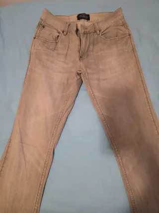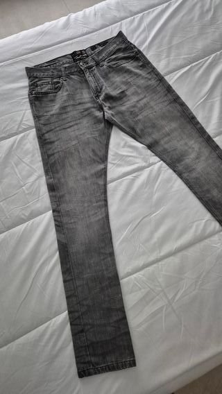 Se vende pantalón vaquero de color Gris, para hombre, de la marca Pull & Bear, es de tipo ajustado. Talla 42. Cualquier duda, preguntar.