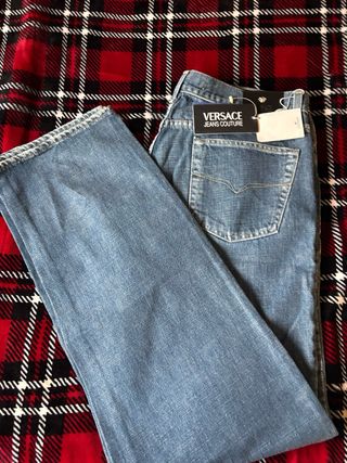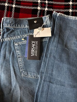 Pantalón vaquero de la marca Versace Jeans Couture. - Diseño clásico. - Tono azul. - Etiqueta de la marca visible. Talla 44