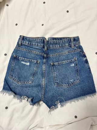 Prenda en muy buen estado. Sin usar ,A estrenar. Entrego en mano o envío. Cualquier duda, pregunta sin problema 😊 Talla es de la 32 a la 36 ,dan talla la verdad. Pantalones cortos vaqueros con un diseño moderno y desgastado. - Estilo ripped con rotos. - Bajo deshilachado. - Cintura alta.