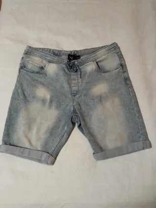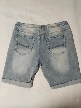 Pantalón corto vaquero con un diseño moderno y cómodo. - Cintura elástica con cordones para un ajuste personalizado. - Lavado desgastado para un look casual. - Dobladillo en los bajos.