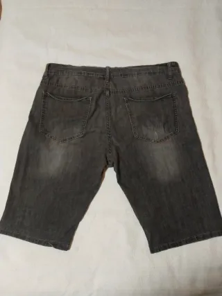 Pantalón vaquero corto de color gris oscuro. Diseño moderno y cómodo. - Cintura con trabillas para cinturón. - Cierre de cremallera y botón. - Bolsillos delanteros y traseros.