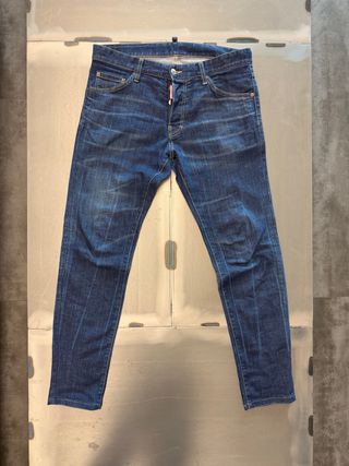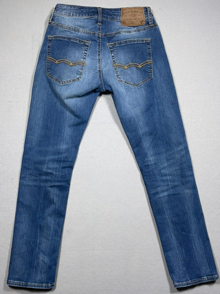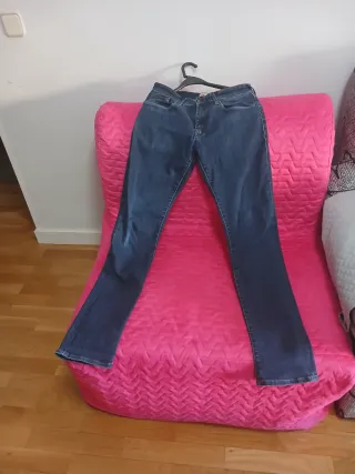Pantalón vaquero de corte ajustado. Usado pero en muy buen estado. - Tiro medio. - Bolsillos delanteros y traseros. - Cierre de cremallera y botón.