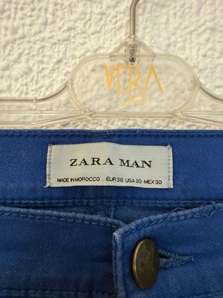 Pantalones vaqueros de corte moderno. - Marca Zara. - Color azul. - Diseño clásico de cinco bolsillos. - Cierre de cremallera y botón.