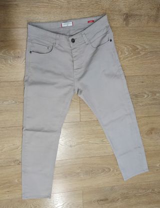 Pantalón Easy wear, en color beig/gris, talla 40, slim. Medidas: 79,5cm de largo desde la entrepierna, 28cm de tiro, 38,5cm de cintura. También lo vendo en negro.