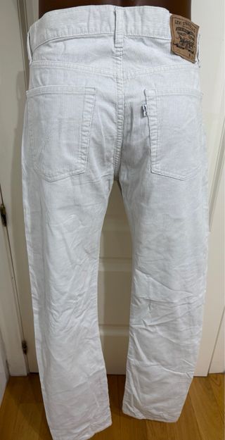 Pantalones vaqueros de pana en color blanco. Modelo 505. - Talla W32 L34. - Cierre de cremallera. - Bolsillos traseros con pespuntes característicos.