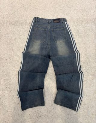 Pantalones vaqueros de corte ancho con un diseño moderno. - Raya lateral decorativa. - Cintura alta. - Bolsillos delanteros y traseros. - Nuevos con etiquetas