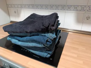 6 Vaqueros de corte ancho en varios tonos de azul y negro. - Talla 54. - Corte ancho.