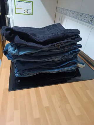 Pantalones varias marcas 2 pantalones vaqueros talla 44 1 pantalón corto vaquero talla M 1 bañador talla M 1 pantalón corto salmón talla M (a estrenar) 1 pantalón corto cuadros talla 42