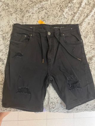 Shorts vaqueros , talla 36, uno de ellos 38 Son de color azul claro , gris y negro y presentan un estilo desgastado. - Cierre de botón y cremallera. - Bolsillos funcionales.