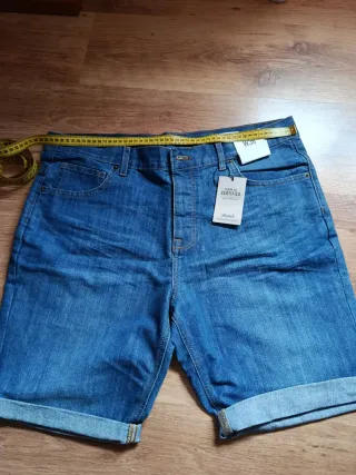 Pantalones cortos vaqueros de color azul. Son de un tejido resistente y tienen un corte clásico. Talla 29 Slim - Tienen un buen estado.