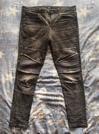 Vaqueros estilo Biker con un moderno acabado desgastado. - Corte ajustado. - Detalle de bolsillos. - Cierre de cremallera y botón.