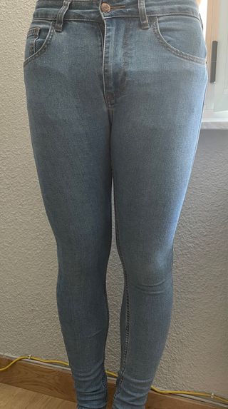 Pantalones vaqueros Bershka, talla EUR36. Son de color azul claro. Estado: Como nuevos. Estilo: Corte pitillo cómodo. Detalles: - Cierre con cremallera y botón. - Bolsillos delanteros y traseros funcionales. Precio dispuesto a negociar. Pregunta sin compromiso si necesitas medidas. Envío rápido y seguro Descuento por lotes