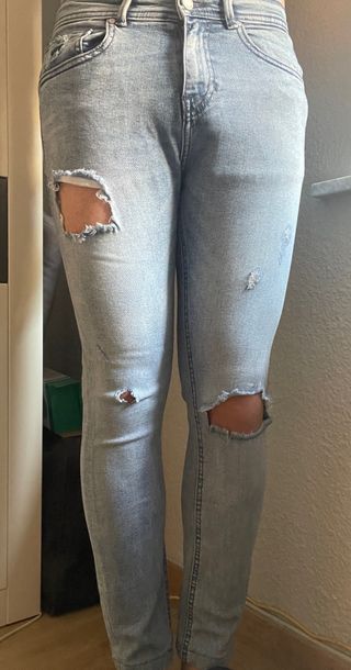 Pantalones vaqueros Bershka pitillo rotos Talla S