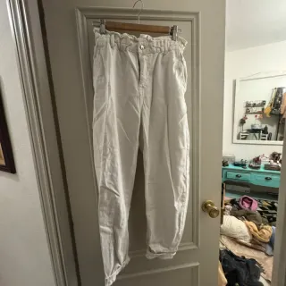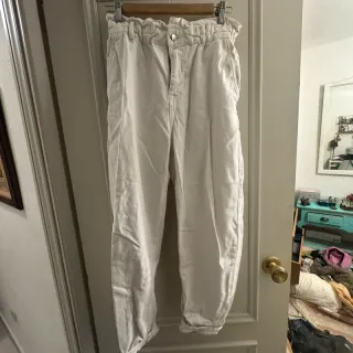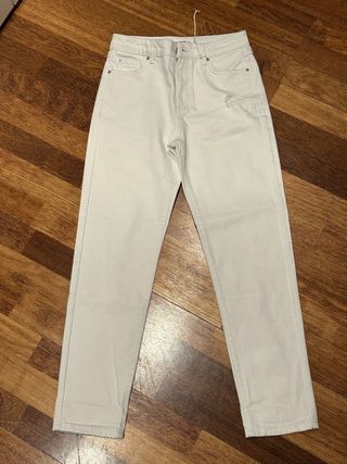 Pantalones vaqueros de corte recto en color blanco. Están nuevos, sin estrenar. Pero la cremallera está rota y hay que cambiarla. Talla XS