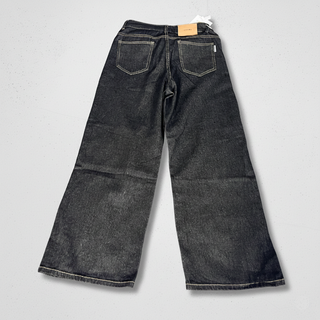 Pantalón vaquero de corte ancho. - Tiro alto. - Lavado oscuro. - Dobladillo en los bajos.
