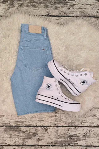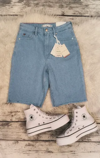 Shorts vaqueros de mujer, tiro muy alto, talla XS de Tommy Hilfiger 🩵 Son largos, hasta la rodilla. Bajos deshilachados La talla original de la etiqueta es 25W, equivale con la talla XS europea. Dejo todas las medidas en las fotos, comprobar bien antes de comprar 📷 Nuevos! Con etiqueta 🏷️ Originales ✅ HAGO ENVÍOS 🚚 *Zapatillas no incluidas ✖️