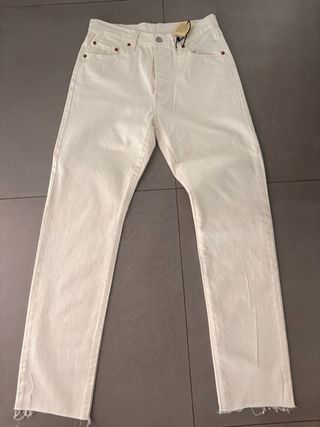 Pantalones vaqueros Levi's 501 a estrenar. Talla 29W 32L - Corte recto clásico. - Color blanco crudo. - Con etiquetas.