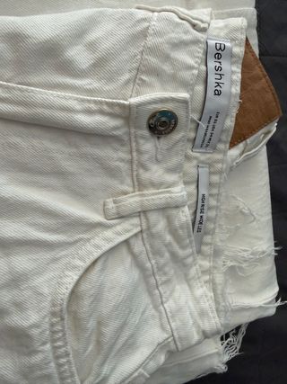 Vaqueros cortos de color blanco con un diseño moderno y desgastado. - Estilo desgastado en los bajos. - Cierre de botones.