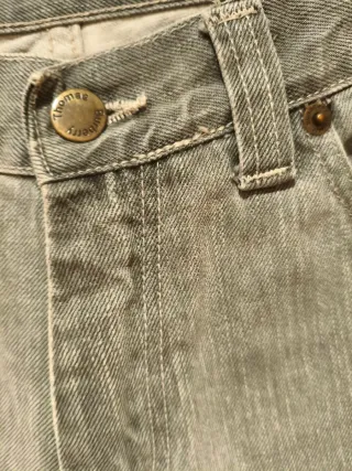 Pantalón vaquero de la marca Thomas Burberry en color gris. Un básico para tu armario.Bastante usado. Es de algodón,no es elástico - Diseño clásico. - Tejido denim. -Talla 32,equivale a una 40 -Largo pierna:100cm -Ancho(costura a costura): 41cm (82 en total) #vaquero #vaqueromujer #denim #talla40 #basico #fondodearmario #capsula #ThomasBurberry #oldmoney