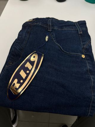 Usado pocas veces, azul vaquero, pitillo tiro bajo, push up