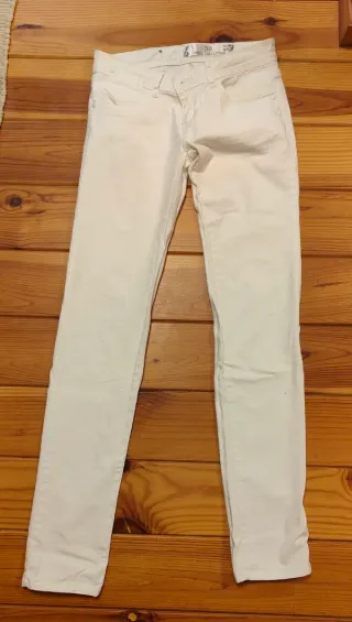 Pantalón vaquero de color blanco, talla M. - Corte ajustado. - Cierre de cremallera y botón. - Bolsillos delanteros y traseros.