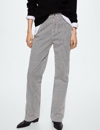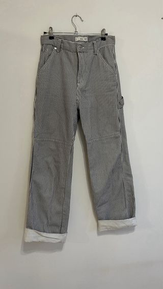 Pantalones vaqueros de algodón con bolsillos. - Diseño de rayas verticales. Referencia 37081323 disponible para ver en mago outlet (agotado) Tejido de 100%algodón estilo tejano vaquero. Diseño recto. Diseño largo. (Yo mido 164 y lo llevo remangado el bajo) Tiro medio. Costuras decorativas. Cinco bolsillos. Dos bolsillos cargo. Trabillas. Cierre de cremallera y botón. Cintura 62 y cadera 90. Tallaje más grande de lo habitual. Largo interior 80 cm. precio original 39’99