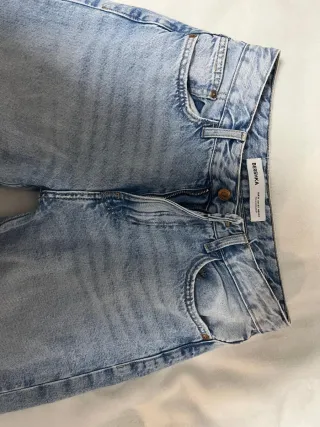 Pantalón vaquero de la marca Bershka en buen estado. - Diseño moderno y versátil. - Tejido cómodo y duradero.